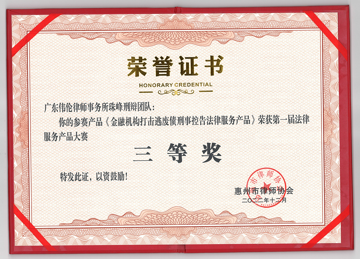 惠州市第三届法律服务产品大赛荣获十大法律服务产品