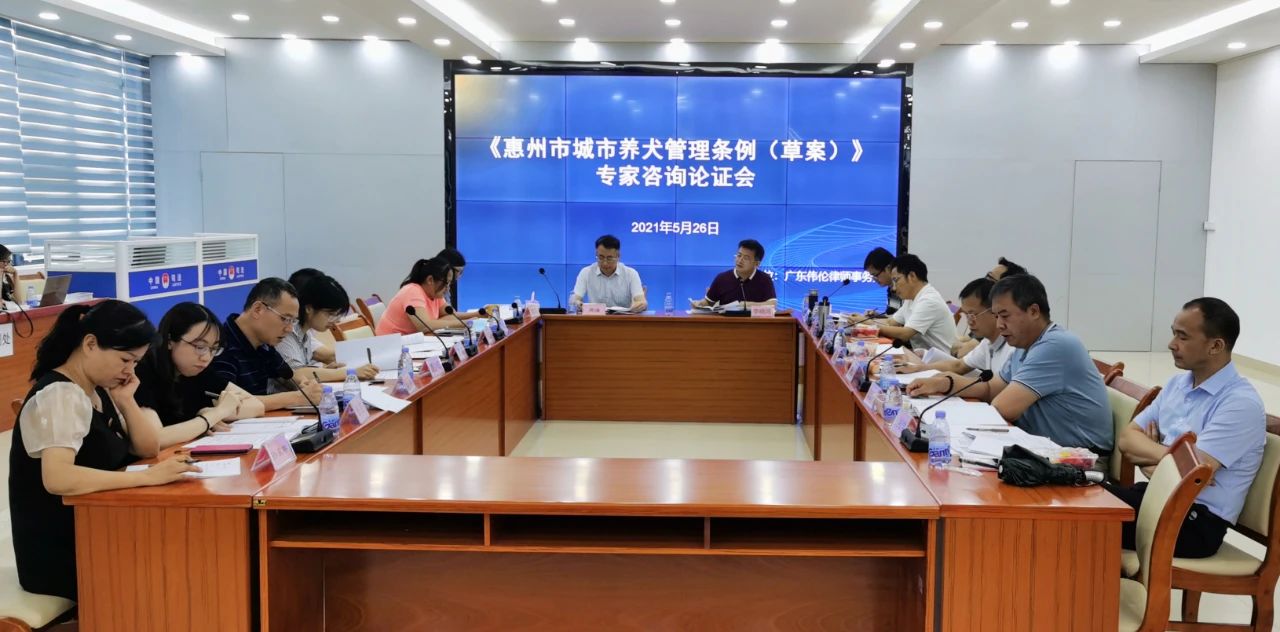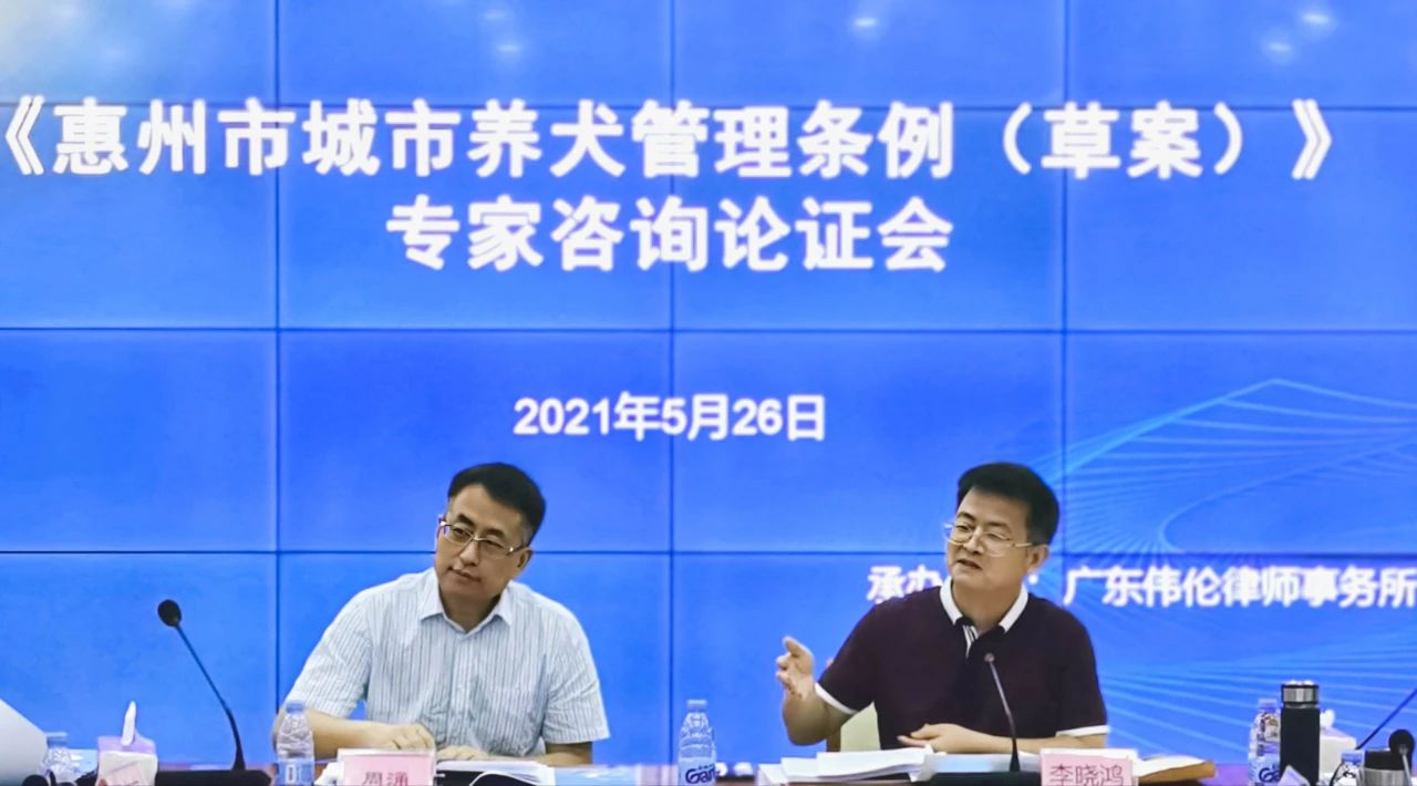 “民有所呼,法有所应”,为加强养犬管理,规范养犬行为,保障公共健康和人身安全,维护社会公共秩序和市容环境卫生,应广大群众呼声,我市制定了《惠州市养犬管理条例(草案)》(以下简称“《条例(草案)》”)。为推进科学立法、民主立法、依法立法,切实提高立法质量,结合市律协开展“我为群众办实事”系列活动的要求,5月26日,广东伟伦律师事务所受托组织专家对该《条例(草案)》开展调研活动及召开专家咨询论证会。