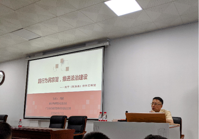2021年4月30日,伟伦所黄均洪律师到汝湖镇埔头村开展“我为群众办实事,法律服务下基层”主题实践活动。 2021年5月7日下午,伟伦所魏顺光律师受邀为惠州市工业和信息化局作《贯彻习近平法治思想,提升行政执法水平》专题辅导讲座。讲座由市工业和信息化局秦余亮副局长主持,全局领导班子成员、机关全体干部职工100余人参加学习。 2021年5月10日,伟伦所周涌律师应邀为惠州市公安局2021年度警衔晋升和入警训练班作主题为《弄通民法典,准确区分经济纠纷与经济犯罪》的民法典专题讲座。 2021年5月10日,在汝湖镇司法所张子洪所长的带领下,广东伟伦律师事务所孙东群律师和司法所工作人员一起到惠城区下围村委会开展“我为群众办实事”活动,再一次进行《民法典》普法宣传,讲座有村干部与村民等共计十八人到场参与。本次活动再一次为群众送法下村,让“法”的种子在群众心间萌芽,对引导更多的群众学法、守法、懂法、用法具有促进作用。 2021年5月11日,伟伦所周涌律师应邀为惠州监狱全体新警作主题为《践行为民宗旨,推进法治建设》的民法典专题讲座。