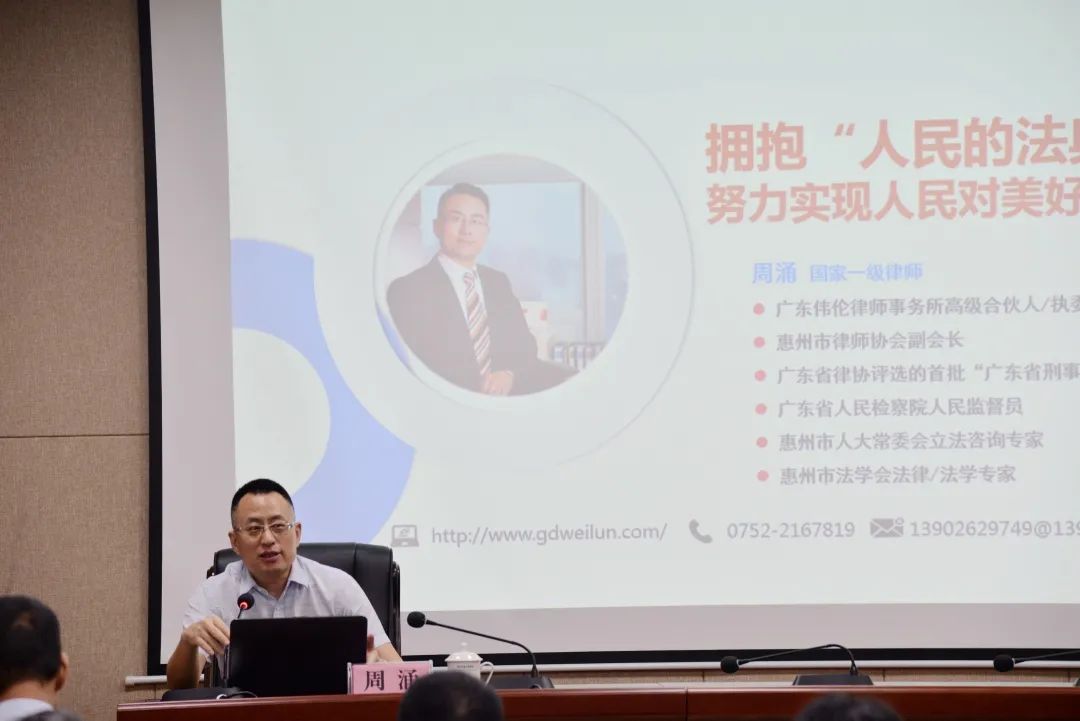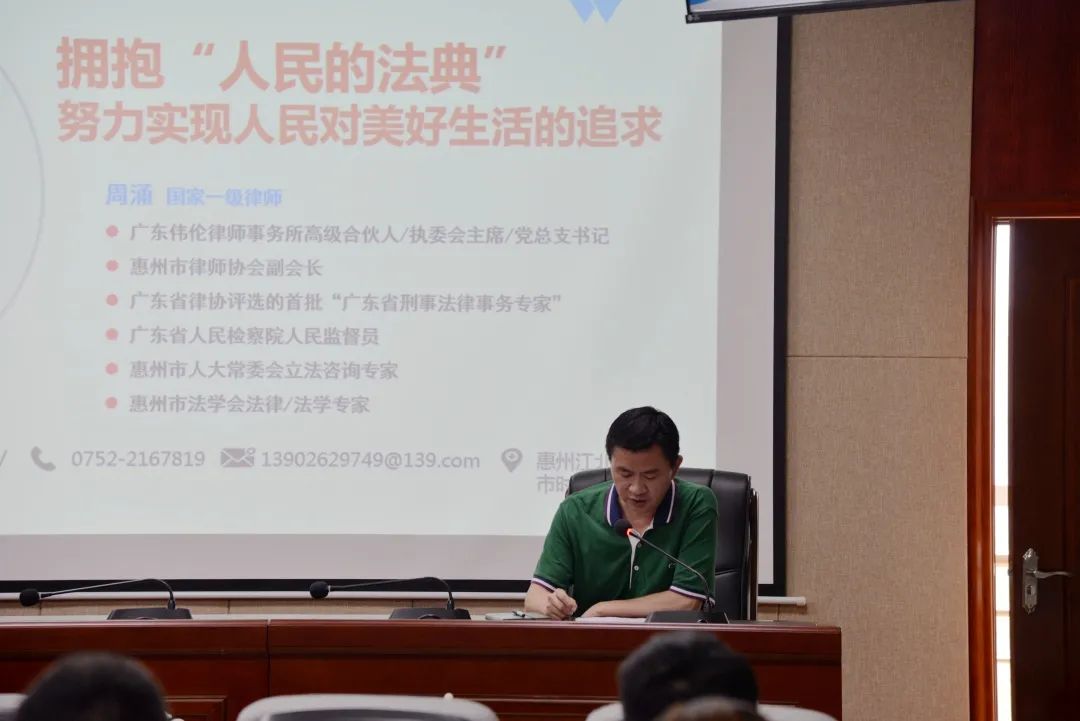 7月31日上午,受惠州市医疗保障局邀请,惠州市律师协会副会长、广东伟伦律师事务所执委会主席周涌律师为该局作了《拥抱“人民的法典” 努力实现人民对美好生活的追求》的专题讲座。