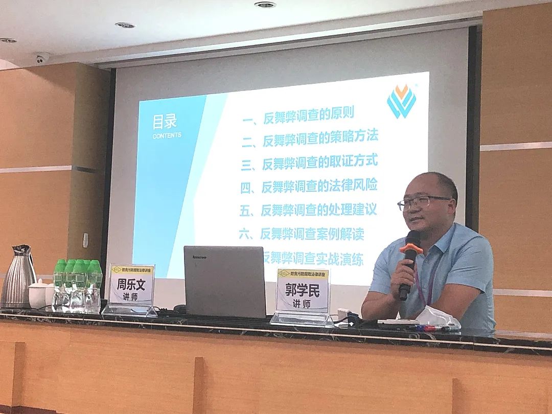 2020年5月13日下午,我所业务服务单位伯恩光学(惠州)有限公司组织管理层近五百人参加合规培训讲座。我所对本次培训活动十分重视,并委派所内具有丰富办案经验的高级合伙人周乐文、郭学民律师担纲本次讲座。