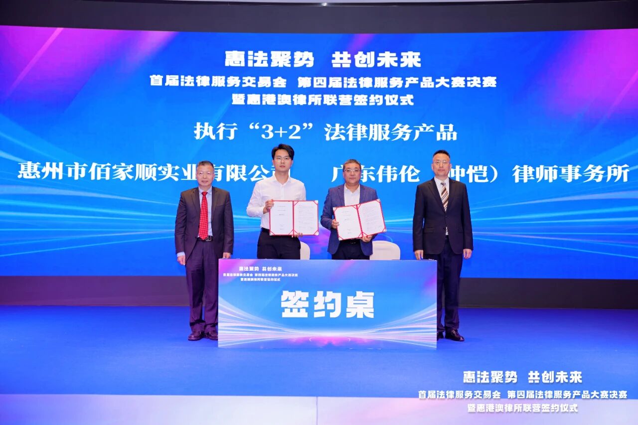 活动现场还举行了法律服务产品签约仪式。广东伟伦(仲恺)律师事务所与惠州市佰家顺实业有限公司成功签约“执行‘3 + 2’法律服务产品”,该产品将为企业在执行环节提供专业、高效的法律支持。