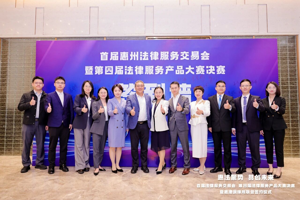 2025年11月14日下午,惠州市首届法律服务交易会、第四届法律服务产品大赛决赛暨惠港澳律所联营签约仪式在惠州千花洲度假酒店隆重举行。此次活动汇聚了众多法律界的精英与专业人士,搭建起法律资源对接、产品创新展示与跨界合作的高端平台。