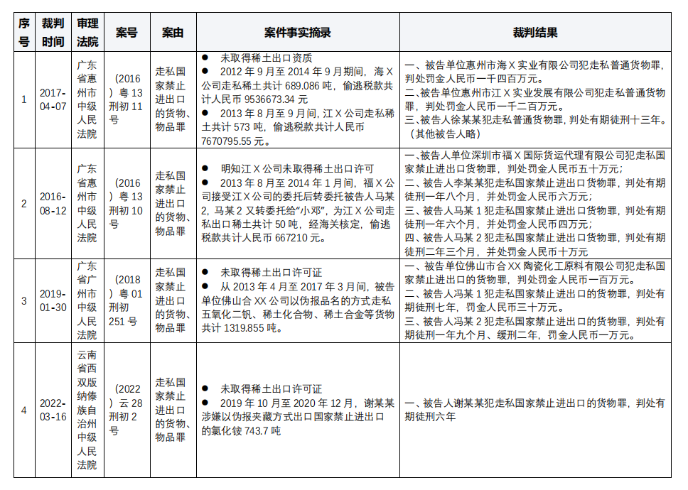 稀土作为国家战略性资源,其出口受到严格管控。走私稀土行为不仅破坏市场秩序,更危及国家安全与资源安全。本文以18宗走私稀土刑事判决为样本,从行为定性、罪名区分、量刑情节等维度,系统梳理司法实践中对走私稀土犯罪的认定标准,以期为司法实务与辩护工作提供参考。