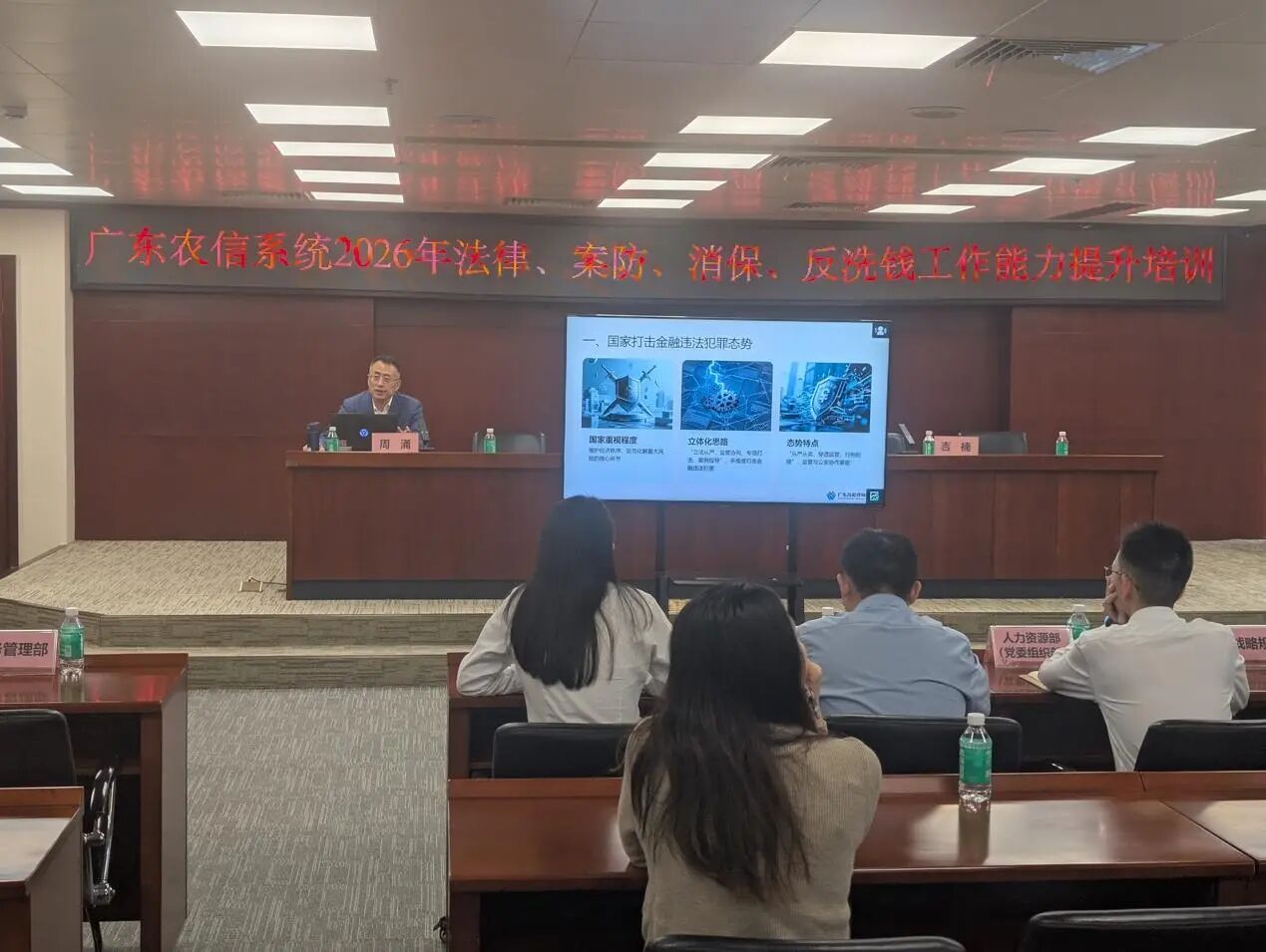 2026年3月24日,广东省农村信用联合社常年刑事法律顾问、广东省首批刑事法律事务专家、惠州市律师协会会长、广东伟伦律师事务所主任周涌律师应广东省农村信用联合社邀请,为全省农村信用社系统工作人员作《金融犯罪典型案例分析(主要信贷领域)》专题培训。